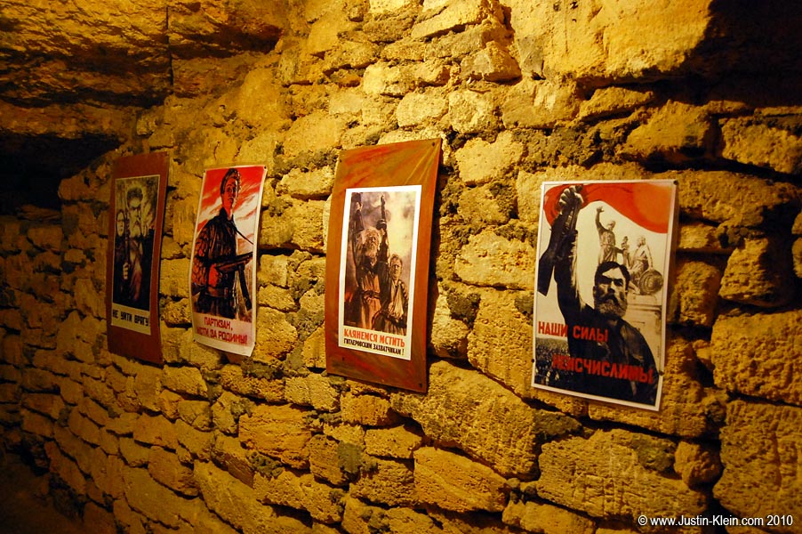 (I should probably mention that Odesa’s catacombs, 2000km of limestone quarries originally created to provide building material for the city, were later used as shelters for partisans hiding out during WW2. This is what most of the tour focused on: the underground facilities, which included everything from a school to a concert hall to stables for horses. Hundreds of partisans lived in the tunnels for more than 30 months during the war – so long that apparently many of the horses went blind from never having seen the sunlight.)