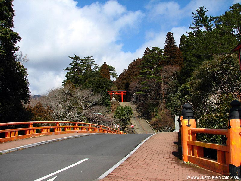 The weather was far too cranky to allow for any real wilderness hikes, and the town I was in was so small that it might as well have been a ghost town – one small convenience store, one or two small restaurants, a public bath, a hotel, you get the idea. So I started off with a light breakfast of shrimp tempura over rice before heading up a small path to the one attraction in sight: Kirishima Jinja, a gorgeous shrine overlooking the town from a nearby ridge. It was challenging at first taking pictures in all the rainfall/snowfall, but thankfully the winds calmed down after not too long and even brought in about thirty minutes of nice blue-skied backgrounds.