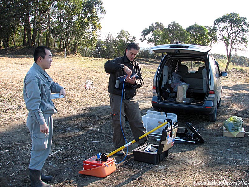Dean’s actual job is to travel to the far corners of the Earth with his high-tech microwave radar equipment and generate images of whatever’s hidden beneath his feet. On the more interesting trips, this can consist of anything from giant tombs to uncollapsed one-man burial chambers to ancient Roman aqueducts. On the less interesting ones, dirt. We were on our way to survey some 5th century burial mounds in Miyazaki Prefecture.