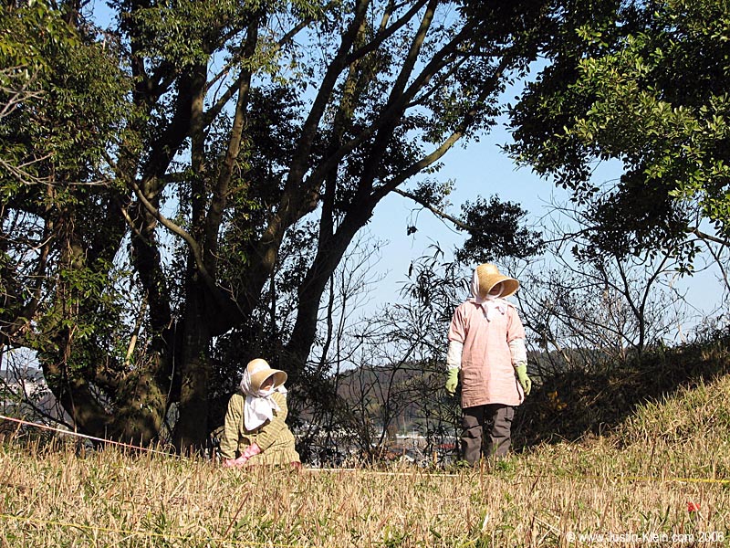 So anyways, after meeting up we headed directly to the survey site and got started. Waiting there for us were two workers from City Hall and three little old farmers’ wives in straw hats…just in case we needed some extra help. They already had measuring tapes laid out for us to mark the path of the survey; all that was left would be to collect the actual data.