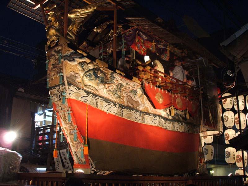 But even when they all took off I still couldn’t bare to leave, so I met up with Naomi and walked back to the now fully ornamented Iwatoyama mikoshi (the one we helped build) before finally starting the ride back home. It’s amazing how tiring it is just being outside in this extreme humidity. Naomi said that right around now, the time of the Gion matsuri, is as bad as it gets. I sure as hell hope so, because it-is-intense.