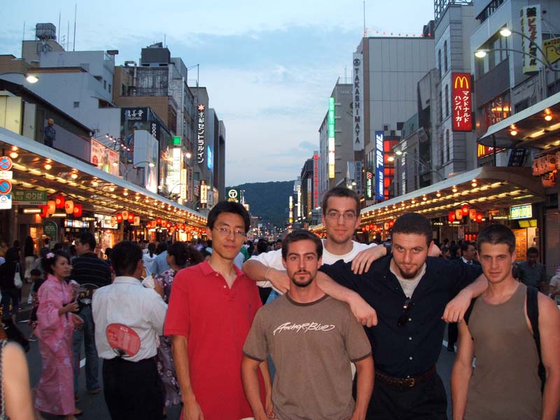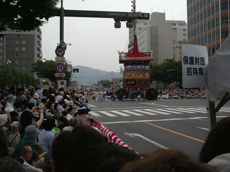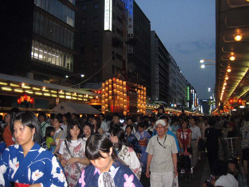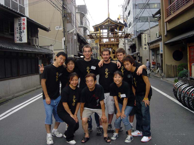 After the procession ended we were once again provided with fabulous obento, beer, and Nihon-shuu before beginning the ride home. I write to you now at 10pm, having just woken up from an hour-long nap and receiving an e-mail from one of our teachers saying that she saw us on a live TV special about the Gion Matsuri.