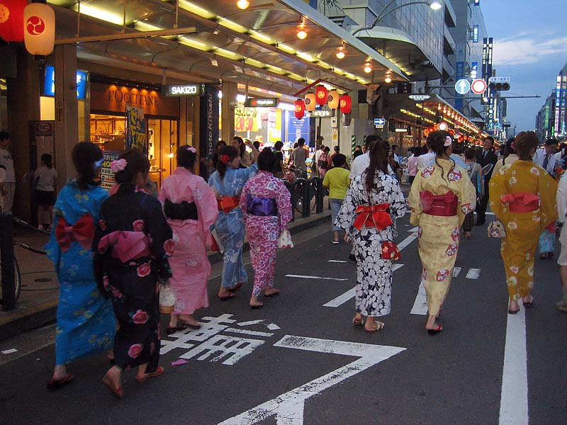 On top of this, a huge percentage of the people were fully dressed in kimono or yukata. And I’m not talking about the plain kimono that little old ladies walk around in from day to day, I’m talking the bright, expensive ones, hair done all up, make-up, the works. And even those who weren’t dressed in traditional clothes were definately dressed to impress. I can’t remember the last time I saw so many gorgeous women in such a short span of time.