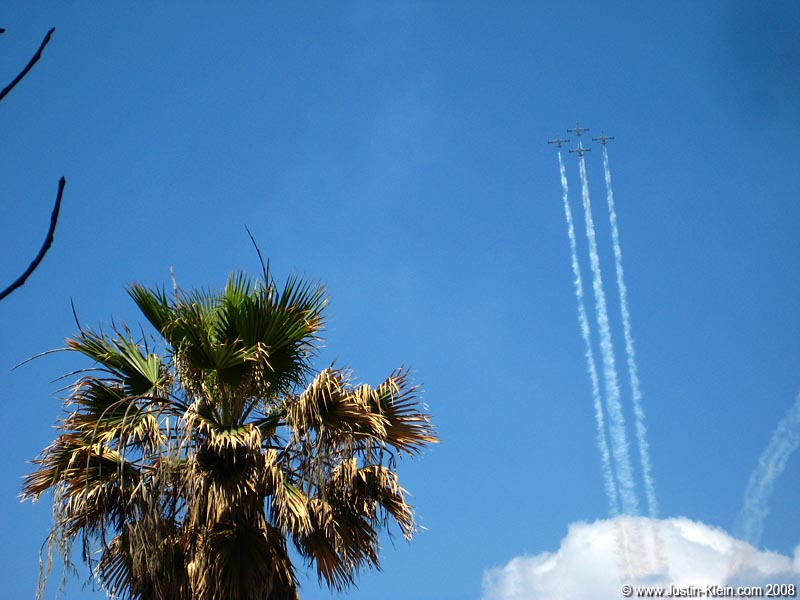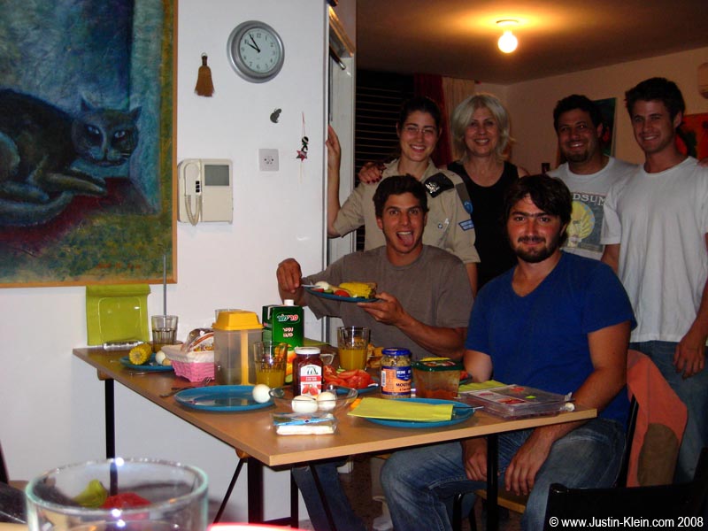 After the party I slept about an hour in Natalya’s car before heading to the beach to watch the big air show – which was just “alright.” Very different from an American airshow, the focus here seemed mostly to be showing off all the fantastic planes in Israel’s arsenal with just a small bit of formation flying tossed in the mix. Much more fun was how we watched it – the beaches were packed with observers, but for some reason almost no one was in the water. Mike, Sammy and I therefore jumped in and relaxed in the waves, watching the planes fly overhead with what looked like a wall of people standing on the sand facing outwards towards the three of us.