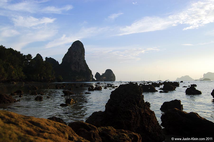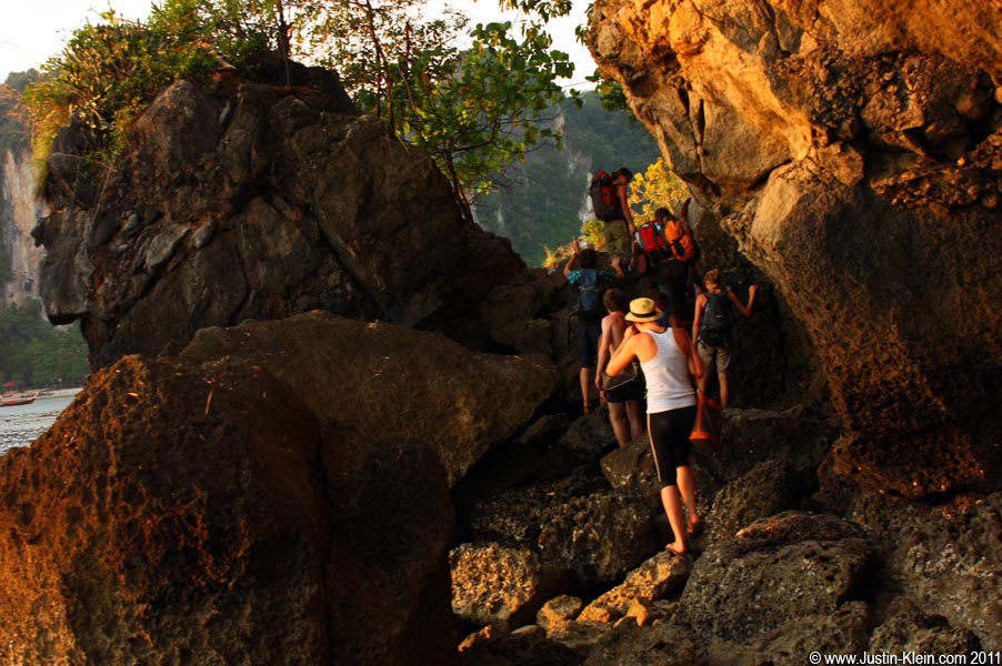 Revealing enough rock that we could scuttle back around to Railay, without having to hike all the way up and over.