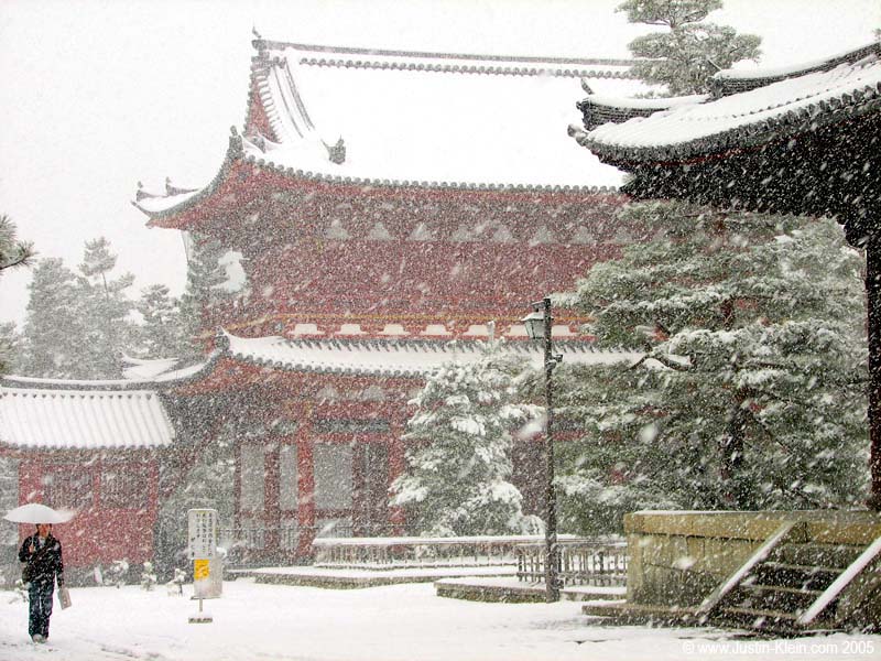 I was so excited when there was a little snow on the ground here in “lower Kyoto” that I decided to climb a mountain to get the full winter effect at Enryaku-ji. Little did I know what was on its way…